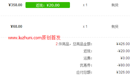 京东商城6瓶装的目前358元在售,我们和68元的圆筒1瓶装一起加入购物车,在购物车页面会减免20元,然后结算时留住你网友们还可使用葡萄酒400-80优惠券,这样的话就是358+68-20-80,实付326包邮到手,每瓶仅需46.5元。