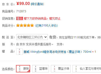 京东商城目前99元在售,买1送送覆盆子味一瓶,这样的话显然是好价格了,覆盆子味一般是坚挺在60以上,现在我们买原味送覆盆子味比常见,喜欢的朋友可以带上,双口味更有意思。