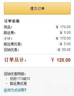 亚马逊98元在售,近期的能够领取雀巢奶粉满170减50优惠券 (或者结算时使用优惠码“ 3VKDALDO2E ”),下单2件,用券后120元包邮,折合60元一罐,近期不错的价格,其它商家80以上。