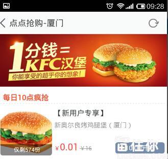 马上就要春节拉,小编也预祝大家一路顺风,过个好年;这个1分钱的KFC汉堡之前在全民爆料频道就有分享过了,在淘点点APP首页即可看到,主页君想着大家刚好春节坐车回家,有时候在火车站汽车站来不及吃饭神马的,进去弄个1分钱的汉堡还是极好的;