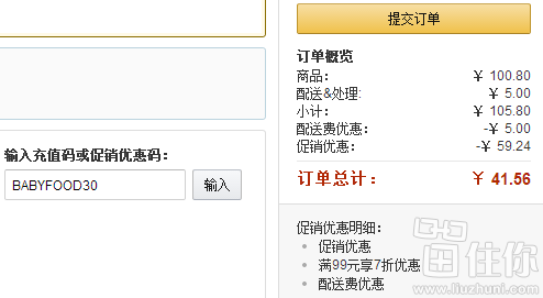 再凑单22.8元的补钙系列强化铁锌钙奶米粉225g,结算的时候输入优惠码:“BABYFOOD30”最后实付41.6元包邮,这样就更划算了。