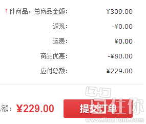 京东目前报价309元,可领取使用满299减80优惠券,最后实付229元包邮,历史新低了,其他商城在300元以上。