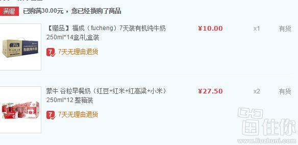 然后呢在购物车可以10块钱换购有机纯牛奶250ml*14盒,合计65元,钻石朋友可直接包邮,其他朋友满79。
