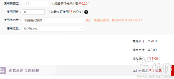 尚妆网目前20元在售,可在留住你领取5元红包“,下单后点击”使用红包“即可,实付15元到手,上次没买到的朋友可要抓紧啦;