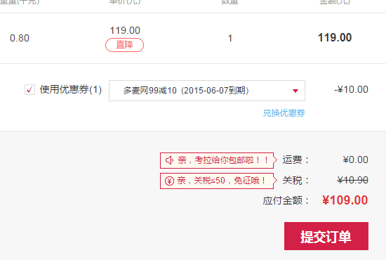 考拉海购特价119元,还可以使用留住你提供的10元优惠券,实付109元到手,神价啊,同款京东全球购159、苏宁199,x宝代购160+。