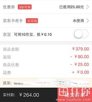 京东商城手机端直接379元,并且参加每满100减30的活动,加入购物车立减90,实际289元,已经是历史低价,还能使用近期留住你推荐的多种京东优惠券,其它商家400元以上。