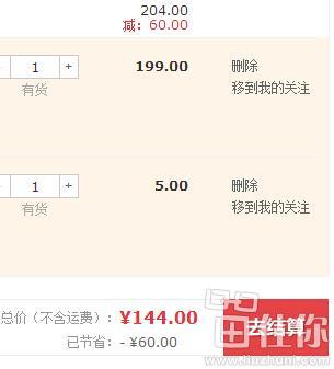 京东商城199元特价中,还可以参加每满100减30的活动,凑单这款售价5元的单品,满减下来实付144元包邮,此前最低179元,同款易迅满减后239元。