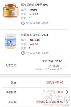 然后参加满99减50元活动,再叠加满10减5的券,连运费共55元成交,有免运费券者最终价是50元包邮。