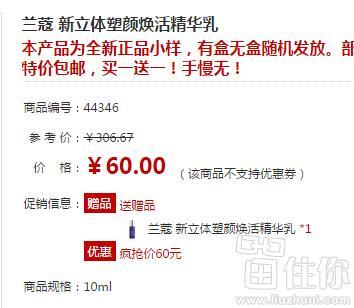 健一网目前60元在售,买1送1,也就是2瓶了,虽然是中小样带非卖品标签,但对比来还是非常划算的;日常30ml要贵非常多;