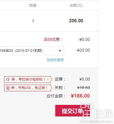考拉海购来到206元,不错的好价格,然后呢留住你独家提供了考拉199-20的优惠券(每个账户限激活1次),实付186元包邮到手,每袋62元,做为L码的,这个价格非常赞,可以为宝宝囤货了!在购物车页面还可9元换购哈;