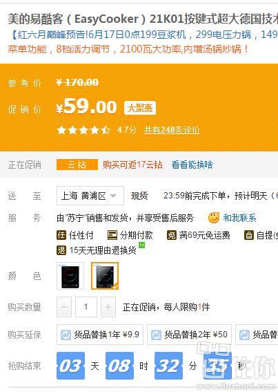 苏宁目前来到59元,完美的价格,部分地区有货,和京东PK起来了,买买买!