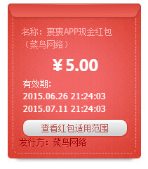 点一下红包会出现二维码,然后手机淘宝扫描,会跳到下载 “裹裹”APP,进入APP首页后即可进行领取5元现金红包;