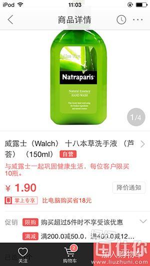 白菜价:Walch 威露士 十八本草洗手液150ml 1.9元(限购5件)