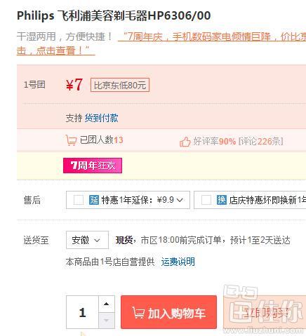 1号店目前7元秒杀,日常的1折,这个价格加上运费也合适,小编看了下目前华东库存还有些,喜欢的速度;