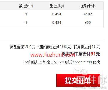 这样可参加满199减100活动,然后在产品页面领取满100减10优惠券,结算用券,实付91元包邮到手;