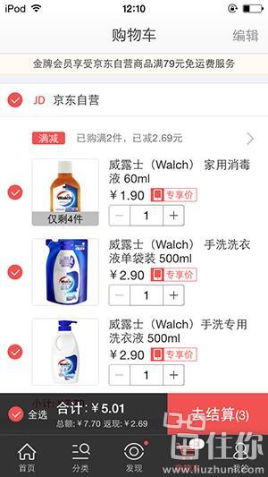 将3件一起加入购物车,手机客户端结算享受65折优惠,实际5元,适合当做凑单。