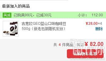 吉意欧 GEO 蓝山口味咖啡豆500g 20.5元(28,99-30)