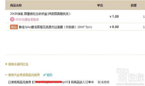 领取后只要在乐蜂网购买任何产品,结算的时候输入兑换码,就会自动出现礼品,尤其适合购买同品牌的静佳包邮产品,或者是我是秒杀党的单品哦