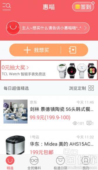 3、更重要的是,这个版本的惠喵可以推送首页推荐的手慢无、神价格以及白菜价,妈妈再也不怕我错过神价拉~
