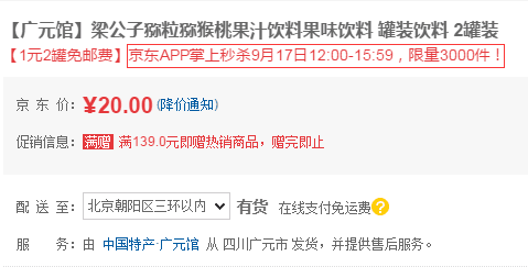 京东手机端12点秒杀售价1元包邮,折合0.5元/罐,价格划算,限量3000件,需要的蹲点秒杀;