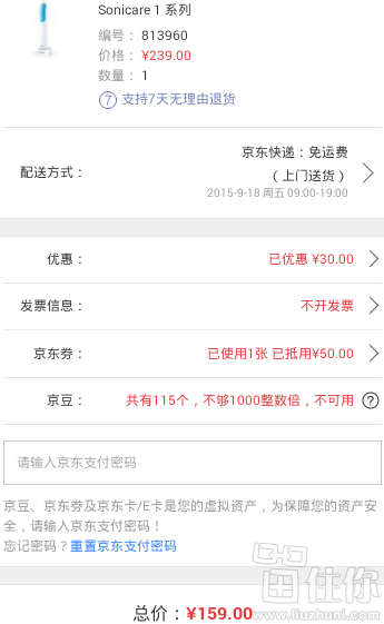 京东售价239元,直接参加满200-30的活动,还可以叠加早上推荐的电动牙刷满100-50券,实付159元包邮到手,近期低价,喜欢可以入手;