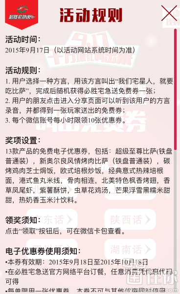 扫一扫下边的二维码,里面有个活动,一个小时可以抽十次,可以拿到免费的兑换券,点外卖必胜客的时候可以免费兑换;