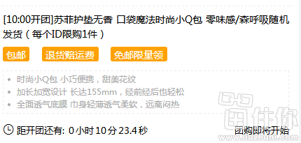 苏菲旗舰店0.01元包邮秒杀,10点开始,库存有10000份,对于留住你的盆友来说,应该是无压力的吧?喜欢的赶紧关注下,时间一到,动动鼠标的事情;