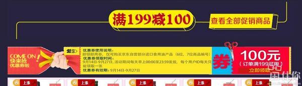 优惠券:京东 进口食用油金秋风暴 满199减100