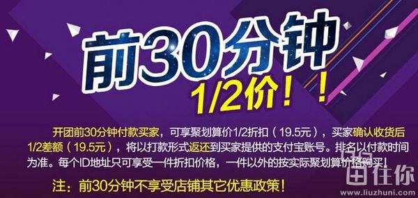 天猫聚划算10点39元开团在售,前30分钟付款下单的朋友收货好评后返现19.5元,相当于半价了,一条算下来是5元钱左右,还是很实惠的,需要的朋友不要错过;