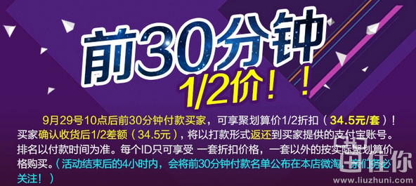 天猫有商家售价69元,10点开抢,前30分钟的盆友可以返现34.5元,相当于只要34.5元就能到手;