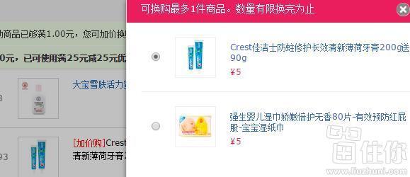 强生婴儿湿巾80片,15.9元,在购物车5元换购290g的牙膏,结算使用20元现金券,实付5.9元包邮到手!