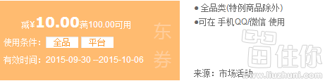该券仅限在手Q/微信端使用,有效时间9.30-10.6;