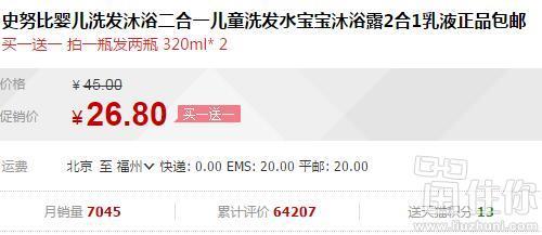 天猫商城目前26.8元在售,主要是目前有个活动,是拍1发2,也就是320ml*2了,这样算下来非常划算,对比外面商超也便宜多了,同款京东1瓶就要25了。