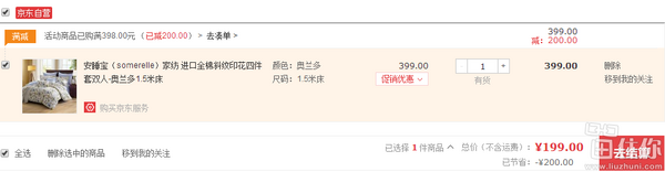 京东售价399元,可直接参加家纺满399-200的活动,实付199元包邮到手,价格给力喔,喜欢的盆友可以入手了;
