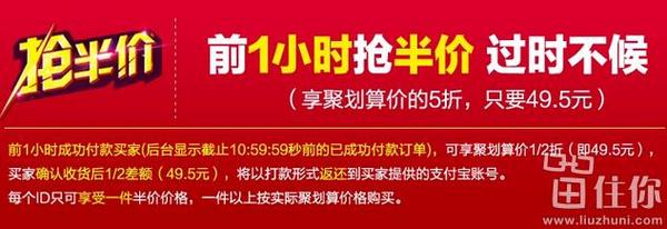 聚划算10点开团前一个小时享受半价49.5元,喜欢的朋友可以看看;