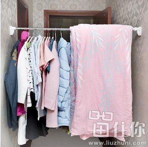免打孔加厚款晾衣杆,5.5元包邮,可长可短,可当浴帘杆、也可当衣架使用;