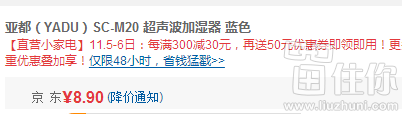 手慢无# 亚都(YADU)SC-M20 超声波加湿器 8.9元
