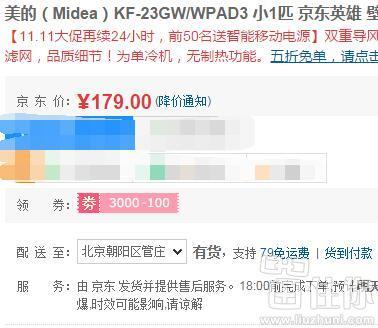 神价格# 美的(Midea)KF-23GW/WPAD3 小1匹 壁挂式单冷定速空调 179元