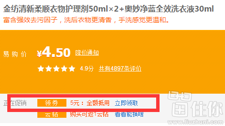 金纺清新柔顺衣物护理剂50ml×2 奥妙净蓝全效洗衣液30ml ,苏宁报价4.5元,价格下方领取5元优惠券,选择自提即可0元到手。
