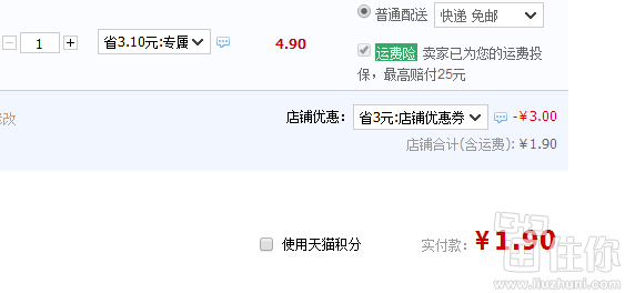 天猫商城售价4.9元,可以领取店铺3元优惠券,实付1.9元包邮到手,价格白菜,喜欢的盆友赶紧的,免得没券了;