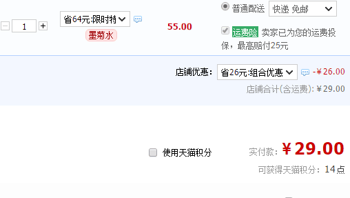 天猫商城目前55元在售,下单即可减6元,还可使用20元的店铺优惠券,双重优惠,这样券后实付29元包邮到手,持平之前推荐好价;