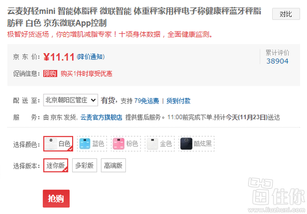 手慢无# 云麦好轻 mini 智能体脂秤 11元