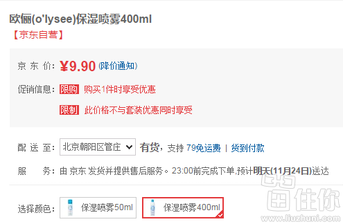 手慢无# o'lysee 欧俪 保湿喷雾400ml 9.9元