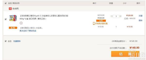 当当网目前129元在售,可参加19.9元换购一盒的活动,实际2盒到手价格147.9元,折算每盒74元左右,手机端的话还可便宜1元,当然换购的那盒贴有赠品标签,要的赶紧,这个价格无敌啦,日常一组至少在120元左右!