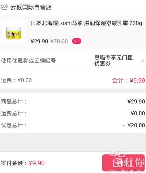 云猴全球购目前特价29.9元包邮,在惠喵APP领取20元现金券后,去云猴全球购APP下单,实付9.9元包邮到手,价格白菜,一瓶度过严冬,喜欢的朋友不要错过;