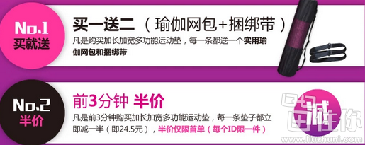 天猫旗舰店售价49元,0点开始,前3分钟付款成功的盆友,可以享受半价返现的优惠,相当于24.5元包邮到手,买还送瑜伽网包和捆绑带