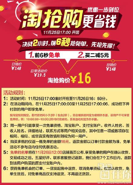 天猫商城售价19.5元,17点开始,系统自动改价16元,且前6秒付款成功的童鞋,可以享受全额返现,相当于白送了,秋冬了,这货还是挺实用的,刚需的盆友不要错过;