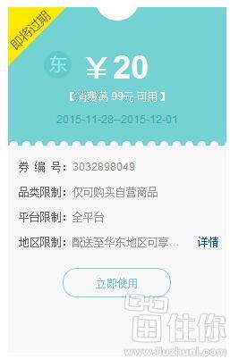 京东冬季专场有华东地区的砸金蛋活动,能够获得全品券优惠券。面额有满99减20、满199减50和满999减100元等,全品类通用,有效期可到12月1日,砸金蛋活动在页面最下方。小编试了一下,中满99减20元的券~