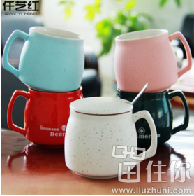 满天星陶瓷杯子带盖勺 9.9元包邮,非常小清新的杯子~