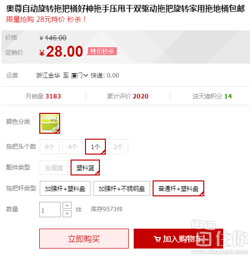 天猫旗舰店售价28元包邮,价格不错,日常使用完全够够的了,这种是手压脱水,冬天拖地不碰水,棒棒哒;